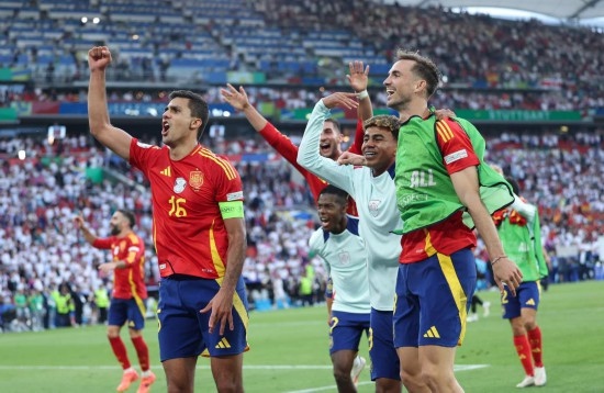 新華社德國斯圖加特7月5日電(記者杜哲宇、岳東興、肖世堯)2024歐錦賽四分之一決賽5日上演精彩對(duì)決,西班牙隊(duì)?wèi){借在加時(shí)賽最后時(shí)刻的進(jìn)球以2:1力克德國隊(duì),昂首挺進(jìn)四強(qiáng)。