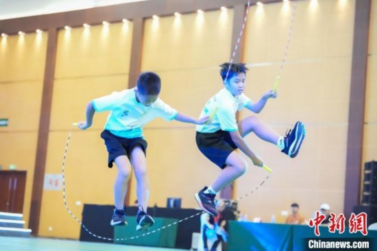 個(gè)人繩、車輪跳、交互繩……第十二屆海峽青年節(jié)·首屆海峽兩岸(福州)青少年跳繩錦標(biāo)賽13日在福州海峽青年交流營地開賽。