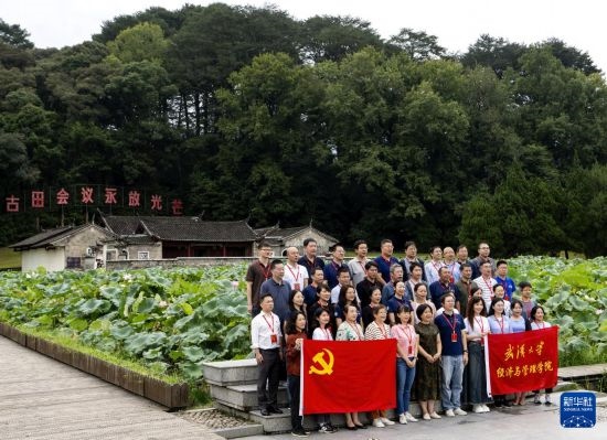 8月29日,來自武漢大學(xué)經(jīng)濟(jì)與管理學(xué)院的培訓(xùn)團(tuán)隊(duì)在古田會(huì)議會(huì)址前合影。