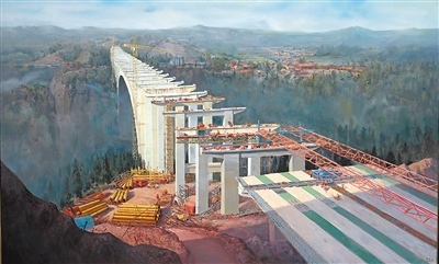 油畫《浙江省三個“一號工程”——改革攻堅》,浙江省油畫院集體創(chuàng)作。