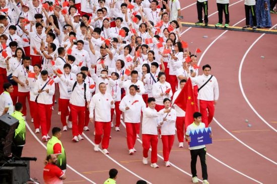 開幕式上,中國代表團(tuán)第13個入場,旗手由乒乓球隊(duì)男子運(yùn)動員李天陽和跆拳道隊(duì)女子運(yùn)動員酈雨琪擔(dān)任。本屆運(yùn)動會中國代表團(tuán)共派出全國22個省區(qū)市的103名運(yùn)動員參賽,其中女子運(yùn)動員55人,男子運(yùn)動員48人,將參加田徑、游泳、三對三籃球、沙灘排球、網(wǎng)球、跆拳道、國際象棋等17個大項(xiàng)、124個小項(xiàng)的比賽。