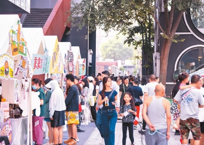 其中,浙江樂清首飾龍(也稱“龍船燈”)是全場的焦點。首飾龍制作工藝復雜,集木工、油彩、紙扎、龍燈、刻紙等工藝于一體。在機關的驅動下,龍船搖頭擺尾,船上幾百個形態(tài)各異的人偶隨之舞動。京西太平鼓表演(也稱“迎年鼓”)也格外引人注目,再現了太平鼓在耍鼓、步伐、隊形變化方面的完整程式及內涵。而張燈結彩的廣東行花街同樣令人心馳神往,匯聚了花卉、燈飾、楹聯、美食、藝術品等。