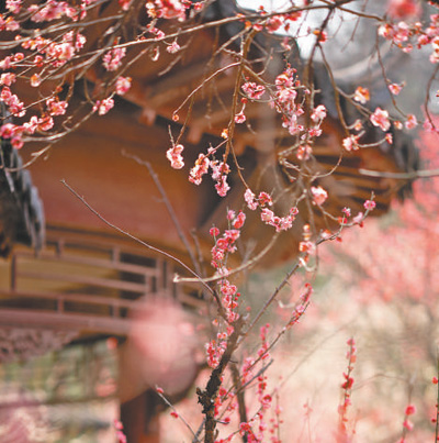 南京的賞梅勝地,除了東郊的梅花山,西郊的古林公園梅嶺、南郊的雨花臺梅崗等地同樣游人如織。近年來,梅崗新種植了大片梅樹,還修建起訪梅亭、問梅閣、寒香軒等仿古建筑,花開時(shí)節(jié)香雪滿樹,梅影橫窗,暗香浮動。許多年輕人來這里打卡拍照,定格下與梅花同框的青春瞬間。