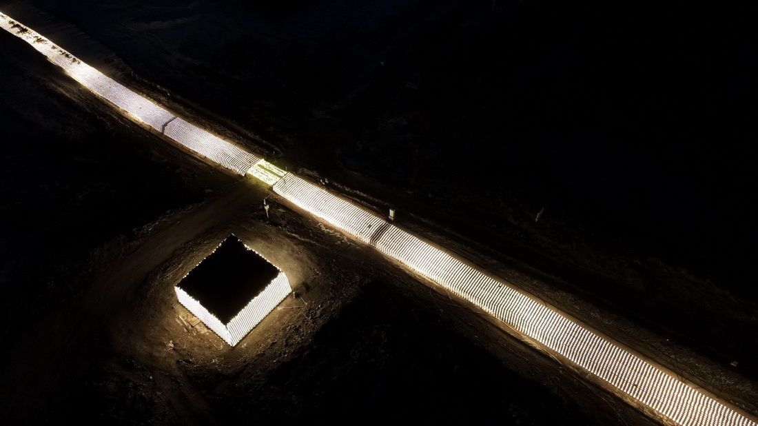 這是12月30日拍攝的崇禮長城景觀展示亮化工程現(xiàn)場(無人機(jī)照片)。新華社記者 牟宇 攝