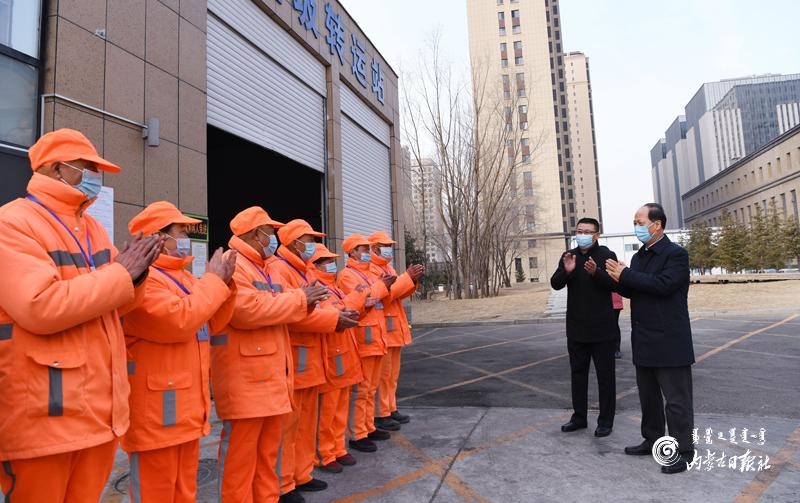 2月11日,自治區(qū)黨委書記、人大常委會主任石泰峰慰問呼和浩特市賽罕區(qū)環(huán)衛(wèi)局萬正生活垃圾轉(zhuǎn)運(yùn)站一線環(huán)衛(wèi)工人,向他們致以新春的祝福。