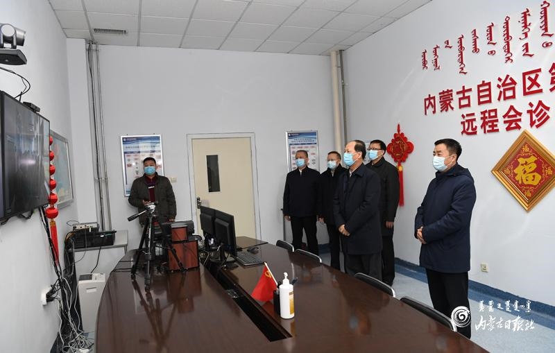 2月11日,自治區(qū)黨委書記、人大常委會主任石泰峰來到內(nèi)蒙古第四醫(yī)院,檢查疫情防控和患者救治情況,并與一線醫(yī)務(wù)工作者視頻連線,向他們致以新春的祝福。 內(nèi)蒙古日報社融媒體記者 袁永紅 攝