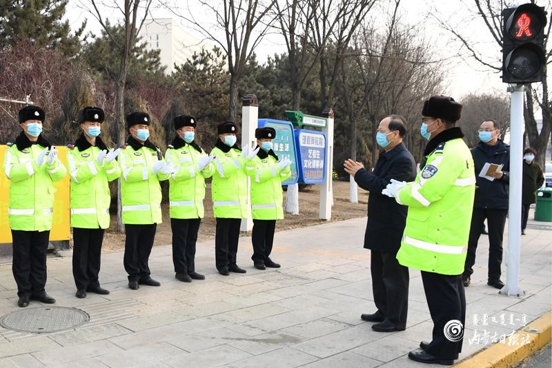 2月11日,自治區(qū)黨委書記、人大常委會主任石泰峰慰問春節(jié)期間堅守崗位的執(zhí)勤交警,向他們致以新春的祝福。 內(nèi)蒙古日報社融媒體記者 袁永紅 攝