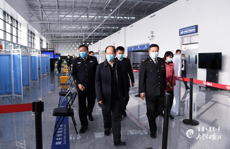 2月11日,自治區(qū)黨委書記、人大常委會主任石泰峰來到呼和浩特白塔機(jī)場國際航站樓,檢查首都機(jī)場分流國際航班熔斷后航班恢復(fù)的疫情防控準(zhǔn)備工作。 內(nèi)蒙古日報社融媒體記者 袁永紅 攝