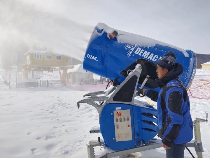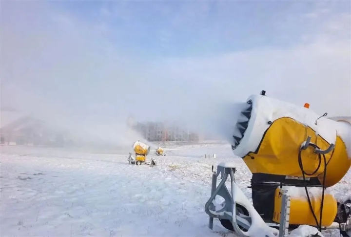在扎蘭屯賽區(qū)金龍山滑雪場初級賽道上,7臺造雪機雪炮齊鳴,滿功率運轉,白色的雪花在雪道上空簌簌落下,將雪場覆蓋上厚厚的一層白雪。據工作人員介紹,按目前造雪量看,平均每小時可造雪20立方。雪場還將根據氣溫、天氣等因素調整造雪進度,預計7天左右完成初級雪道造雪任務。