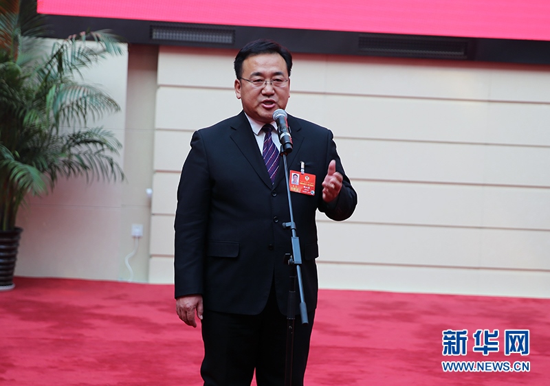 13日下午,在內(nèi)蒙古自治區(qū)政協(xié)十二屆三次會(huì)議舉辦的第二場(chǎng)“委員通道”上,政協(xié)委員魏山虎在回答記者提問。新華網(wǎng)石毅攝