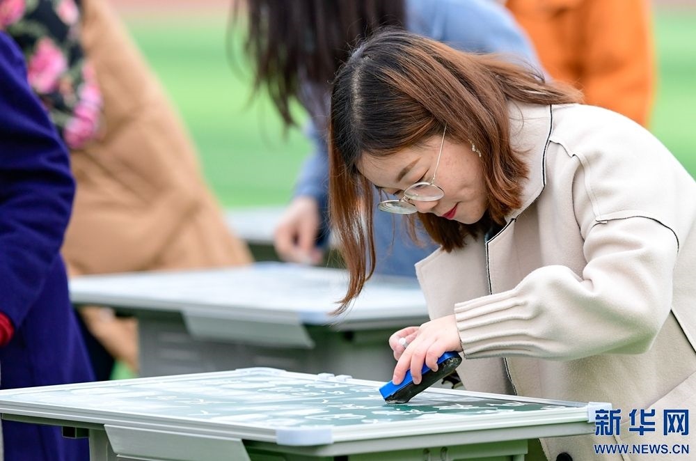 3月8日,呼和浩特市第三十八中學(xué)教師在板書比賽中。新華網(wǎng)發(fā)(王正 攝)
